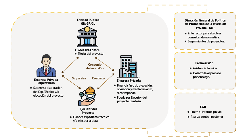 Son aquellas entidades públicas (Gobierno Nacional, Regional, Local y Universidades), las empresas privadas que financian y/o ejecutan los proyectos y las entidades supervisoras de aprobación como el MEF y proinversión.